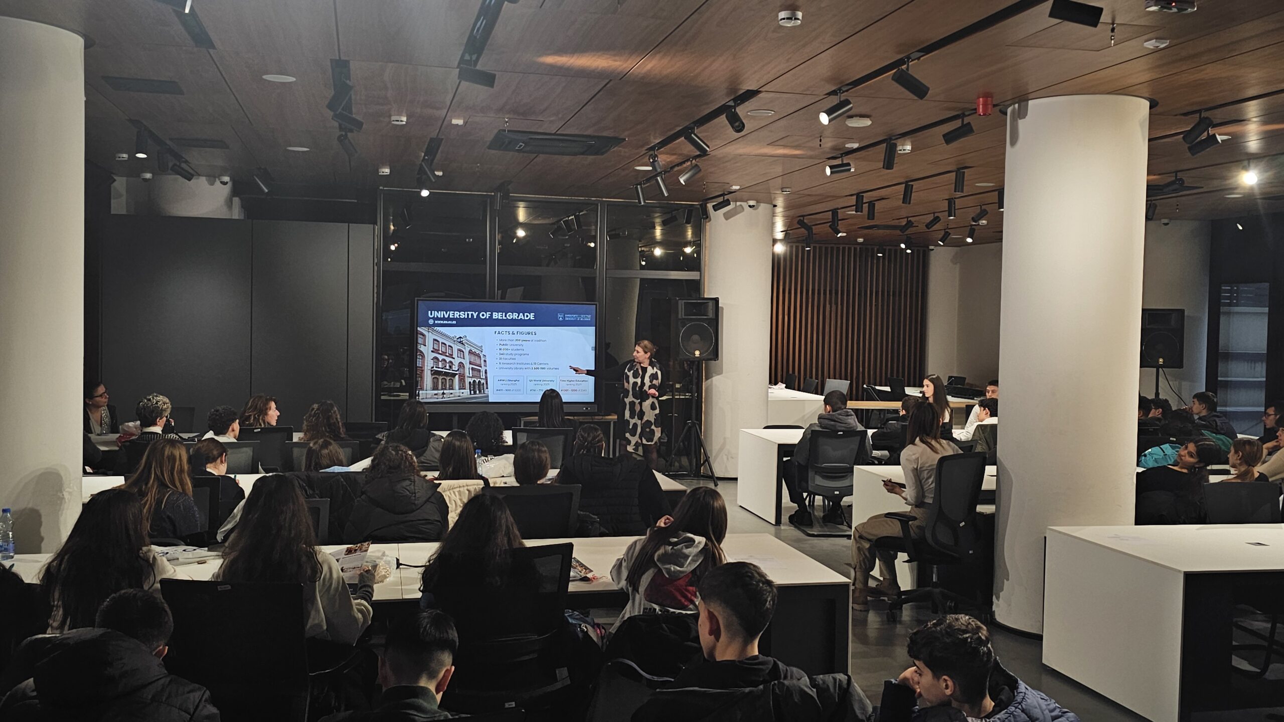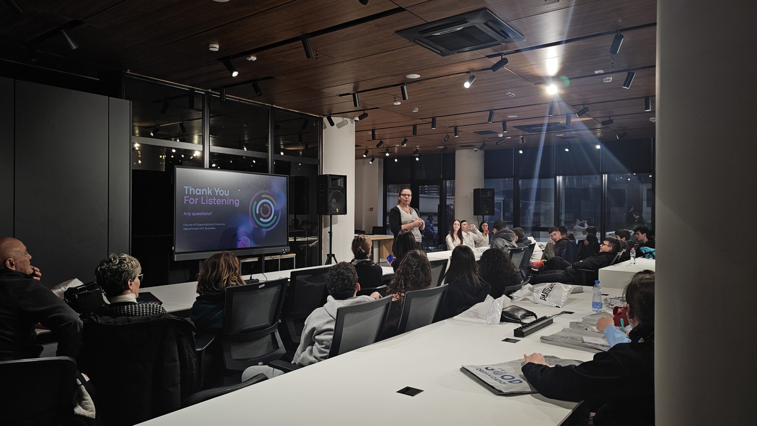 Проф. др Сандра Једнак, продеканка за међународну сарадњу и финансије, представила је студијске програме и могућности за стицање практичног искуства кроз сарадњу са партнерима и пројекте мобилности. Посебан нагласак био је на међународној сарадњи, повезивању студената са пословним окружењем, као и на значајним конференцијама које ФОН организује.