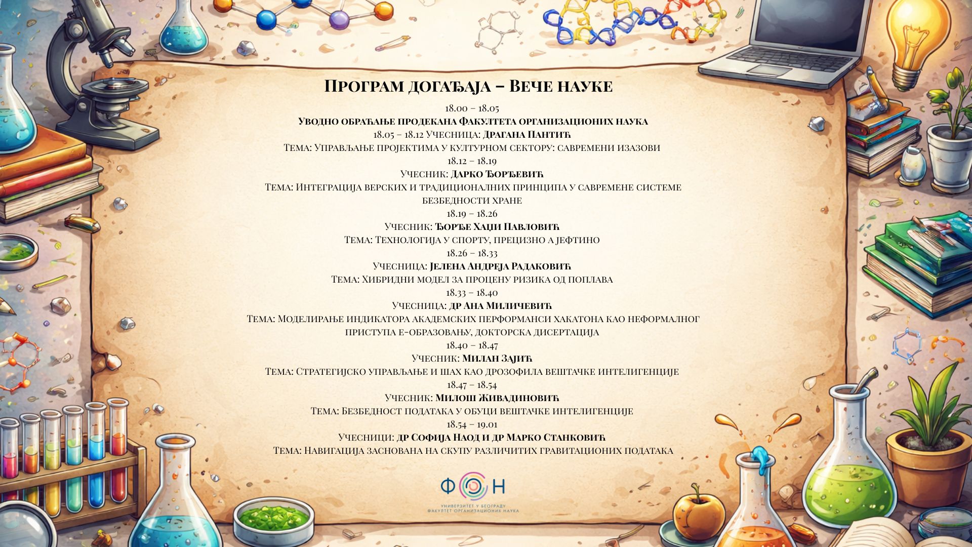 На Универзитету у Београду – Факултету организационих наука, у уторак 23. децембра, одржано је „Вече науке“ – догађај посвећен представљању истраживачких тема, отворених научних питања и различитих приступа савременим истраживањима, кроз кратка, динамична и садржајно излагања.
